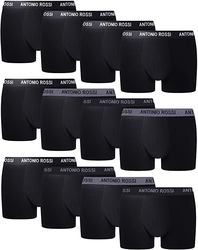 Aprovecha esta gran promoción de 12 boxers negros para hombre, resistentes a la decoloración, con tiro bajo y costuras planas, lavables en maquina y se pueden secar en la secadora.