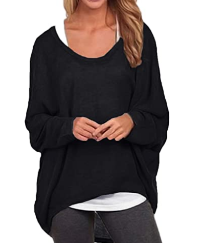ZANZEA Mujer Jersey Negro Manga de Murciélago Irregular Tallas Grandes Casual Tops Sexy Suéter Negro Suelta Camiseta Manga Larga.